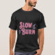I give wanted to give this a 4 instead of a 5 because these Basic DARK T0shirts run unexpectedly SLIM or Narrow. Which is great if you do not have a potbelly, but I have a paunch. It isn't the shirt's fault that I've got a beer belly. The design and shirt itself is a quality cotton shirt. The color is more of a deep purple, but still a very pretty color. The Basic DARK T-shirts run a bit SLIMMER than the Basic Ts. The neck is a fraction narrower (or seems to be narrower) also. I'm a paunchy middle-aged woman and my neck is 12 inches (31cm) thick and the neckline fell about the same as in the photo of the man, and I had the desire to tug it a bit. So if you're a thick necked man or like loose shirts, be aware these are slimmer shirts. Once I get rid of my lockdown paunch it'll look great. The shirt washed well in cold water with no apparent bleeding. We don't have a dryer, so it hung dry. Did not shrink. Love the colors and the design. The design looks smaller on my shirt than it does on the model on-line. But still, it looks good on the shirt. The printing looks as it does on the model, just the size seems fractionally smaller. Washed garment in cold water, hung dry and design appeared unaffected.