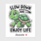A cute turtle slowly walking through life, with the typography reminding everyone to "Slow Down and Enjoy Life".