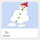 A whimsical design featuring a sad slowly melting snowman, his legs have melted away and his buttons are sliding down his body.