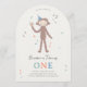 This sweet Slumberkins first birthday design features Bigfoot smiling proudly while holding a birthday cake and wearing a festive party hat. Soft, neutral tones give the artwork a calm and cozy feel, while scattered confetti and playful musical notes add a sense of fun and celebration. The gentle illustration style and arched layout create a warm, storybook-inspired look that feels perfect for a toddler’s milestone birthday. The name, and party details are fully customizable, making this design easy to personalize for a meaningful and memorable first birthday celebration with a beloved Slumberkins character.