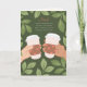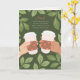 This Father's Day card is for coffee lovers! With my dad, I could always tell him about my day or ask for advice while having a cup of coffee with him. We'd put our heads together and there was no problem that couldn't be solved. This illustration features a botanical, leafy border and two hands holding mugs of coffee. The copy reads: "Dad, Nothing beats a heart to heart and a good cup of coffee with you. The next one's on me."