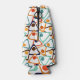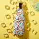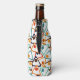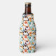 This bottle cooler, has a mid-century modern design of small, rounded triangles with white centres and ovals, in the middle in 70s colours, overlapping each other. Want different colours? Message me.