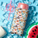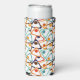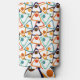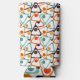 This seltzer can cooler has a mid-century modern design of small, rounded triangles with white centres and ovals, in the middle in 70s colours, overlapping each other. Want different colours? Message me.