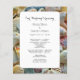 Small beach wedding ceremony programs. Pretty beach shells cover the edge and entire back of this easy to use template. Add your own text for a marriage by the sea.