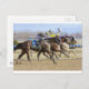 Winter racing at historic Aqueduct Racetrack, home of the prestigious Wood Memorial stakes. A thrilling photo finish of three thoroughbreds heads apart at the wire. The white roan racehorse on the rail, Small Bear got up the win.