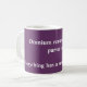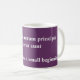 A purple and white mug with a latin quote and the english translation underneath in white font. "Everything has a small beginning" is a quote by the Roman lawyer, Cicero.