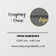 Decal design for small business with logo branding and trading hours for customers. This template also includes the company name and website alongside the business hours of operation.