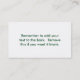 Business Card, Size: Mighty, 89 mm x 64 mm,Paper: Standard Semi-Gloss, Corners: Squared