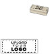 Small 2.5" x 1" custom rectangular wooden company logo stamp.