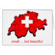 (click to edit)Red map of Switzerland with the white Swiss cross over it. Type underneath says "small but beautiful".