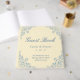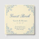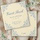 Elegant coastal chic butter yellow wedding guest book for vintage dusty blue accents for a fairytale theme wedding. This combination of coastal and classic border design are perfect for a cottage core, bridgerton inspired vintage chic wedding for garden or old money events. Personalise all of the text to read whatever you like. Customise the monomgram and add a custom wedding saying or phrase. Designed by Simple Desert Designs Studio. Contact us for colours that match your wedding theme perfectly.