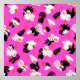 Small ditsy pattern with tropical motifs, hand drawn pineapples and leafs in bright pink and orange colours on black background