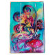 Whimsical ,colourful ,vibrant enchanted fairy woods in the moon light .Acrylic -watercolor painting with gold sparkles,golden foil and iridescent colours .