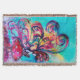 SMALL ELF OF MUSHROOMS Pink Blue Fantasy Throw Blanket