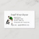 Customise this business card with your own information. Small Motor Repair Service with cartoon guy frustrated with his lawnmower