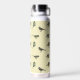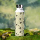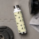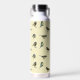 Summery water bottle with a garden bird pattern on pale yellow background.