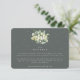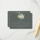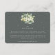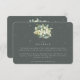 A small dark grey green wedding enclosure card displaying online response/RSVP details, wedding information and your wedding website. Featuring an elegant bouquet/posy of hand painted snowberries and eucalyptus on the front and a wreath on the back of the card. All text is fully editable and the scattered dots on the front and back can be deleted before ordering if you would prefer. This card is available with alternative botanical designs and in different colours and sizes. Please view the Collection in my store to see all options and coordinating items.