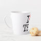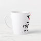 Small I heart logo latte mug with distressed text. Vintage look typography and faded red heart. Create your own cup for what you love. Custom gift for home or office.