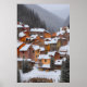 A small Italian town in mountain at winter time with snow on the roofs. This is a AI generated art.