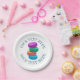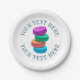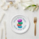 Small paper plates with coloured macarons drawing. Elegant typography template for personalised text. Stylish party supplies for Birthday, Christmas, Holidays, wedding, dinner party, baby shower, baking lessons and more. Great for serving French pastry, macaroon cookies, homemade food, cake, desserts, sweets, treats and more. Available in small and large sizes. Beautiful pastel watercolor design.