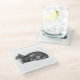 A compact scene of a tabby at rest brightens coffee breaks. Textured black and white flatters wood and stone. Perfect as a stocking stuffer or mix-and-match set.