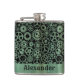 Small Steampunk Verdigris Bronze Gears Custom Name Hip Flask