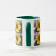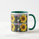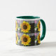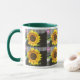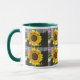 Sunflower design repeated on sturdy coffee mug- two sizes, customisable with different colours, sizes. Brighten someone's day with this lively mug !