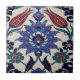 a wonderful tile 4.25 inches. a nice size for coasters. ceramic with a vintage design. possibly portuguese. cream and blue, red and green.