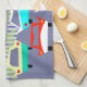 Pass the popcorn! This Small Town Drive-In Movie Kitchen Towel will transport you to a simpler time, when gas was cheap, rock and roll was young, and the movie stars of Hollywood's Golden Age shined brighter than the night sky. The design features the rear view of five, virtually indestructible, retro cars in colours of red, pink, turquoise, jade and yellow. In front of the cars is a giant movie screen, showing a black and white movie, featuring two, star-crossed lovers in hats and trench coats. In the background, there is a grey, picket fence, a row of green, cedar trees, a royal blue sky and a yellow, crescent moon. We hope you've enjoyed our feature presentation!
