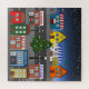 Colourful and bright small town neighbourhood with a traditional Christmas tree in the middle. This design has two main versions, one depicting the town during daylight including a rainbow and sun and the other one at nighttime, depicting a starry sky. Check out the different puzzle sizes for puzzle difficulty and layout.