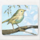 Small Yellow Bird Perched on a Branch Looking up Mouse Mat
