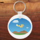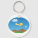 A small yellow plane flying over a landscape. This design looks really effective on this Keychain