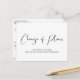 If circumstances require you to reduce the attendance at your wedding, you can inform family and friends with this modern and minimal, yet elegant, black and white smaller downsized wedding announcement postcard. "Change of Plans" is written in a stylish script and you can easily personalise the wedding downsize message in more detail, including any virtual wedding events and future celebrations.