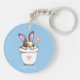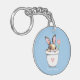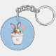 Smart Bunny with Flower & Heart on Light Blue Key Ring