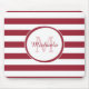 Smart Crimson Red Awning Stripes Name and Monogram Mouse Mat