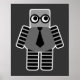 This cute and smart geek robot illustration features a fun robot with gray and black striped legs and arms, thick rimmed black glasses and a stylish tie! This black and white cartoon robot artwork is the perfect gift to buy for robot lovers and anyone who loves original graphic art!