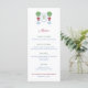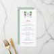 A menu design in festive colours (red and green) and featuring my own original watercolor illustrations (the boxwood topiary with bow). The pattern on the reverse was created digitally by me. The monogram letter in the crest could be the first letter of the family name or the first name of the honoree (you could also access the design tool and delete this entirely to just leave the boxwood topiary with bow). You can also change the contrast colour on the reverse (currently a sap green) by changing the background colour on the reverse side.