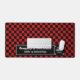 A smart red and black look for your workplace, using the classic chequerboard design as a background. The chequered flag style squares capture the retro trend and add a masculine look that can still combine with bright colours to include your corporate palette or small business brand. It's simple to upload your logo to appear beside the customisable text, which will allow you to personalise for an individual or a company boss.