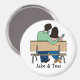 Smartphone-loving couple- custom cartoon magnet