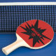 A reversible ping pong paddle, diamond plate background on one side, red background on the other. Both sides have the text SMASH IT. It's a funny ping pong paddle you can wave around during your best pong plays.