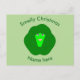 This postcard features a cute cartoon of a green brussels sprout with big eyes and a smile. It has dark green leaves around the outside and a paler green inside.