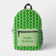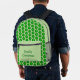 This awesome backpack features a cute cartoon of a green brussel sprout with big eyes and a smile. It has dark green leaves around the outside and a paler green inside. There is custom text so you can include a message. The default message reads smelly Christmas.