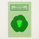 This awesome planner features a cute cartoon of a green brussel sprout with big eyes and a smile. It has dark green leaves around the outside and a paler green inside.