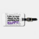 Love love love this tag. Other side says 'Life is too short to be anything but happy'. Easy to recognize. Excellent printing job.