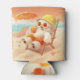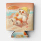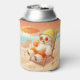 Smile Dog is in full vacation mode—relaxing in orange shorts, sipping a beach drink, and soaking up the sun. Perfect for summer vibes and chill spaces.