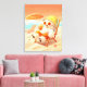 Smile Dog is in full vacation mode—relaxing in orange shorts, sipping a beach drink, and soaking up the sun. Perfect for summer vibes and chill spaces.
