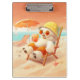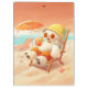 Smile Dog is in full vacation mode—relaxing in orange shorts, sipping a beach drink, and soaking up the sun. Perfect for summer vibes and chill spaces.