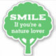 Cool sticker with a big green tree, and the words SMILE If you're a nature lover. Great for ecologists, environmentalists, activists and more.