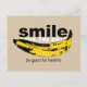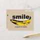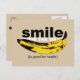 Graphic art: Banana orientated to form a smile + small text between brackets: (is good for health). Perfect for anyone who keeps smiling year after year. Design on invitation postcard with texts for 65th Birthday Save the Date to customise. You can easily change text (font, colour, size and position) by clicking the customise button. Matching birthday invitation, birthday guest books (hard cover and spiral notebook), birthday paper napkin, paper plate and more...