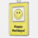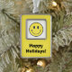 Spread some holiday cheer with this delightfully retro metal Christmas ornament featuring a bright yellow happy face and the words "Happy Holidays!" in a groovy vintage font. This ornament is a perfect throwback to the carefree, feel-good vibes of the 70s, making it an eye-catching addition to any Christmas tree or holiday decor. If you love all things retro, have a soft spot for vintage aesthetics, or just want to infuse your holiday decorations with positive energy, this ornament is the perfect way to do it. The bold, sunshine-yellow smiley face instantly brings back memories of the era of disco, bell-bottoms, and peace signs, while the festive message adds a joyful holiday touch.
